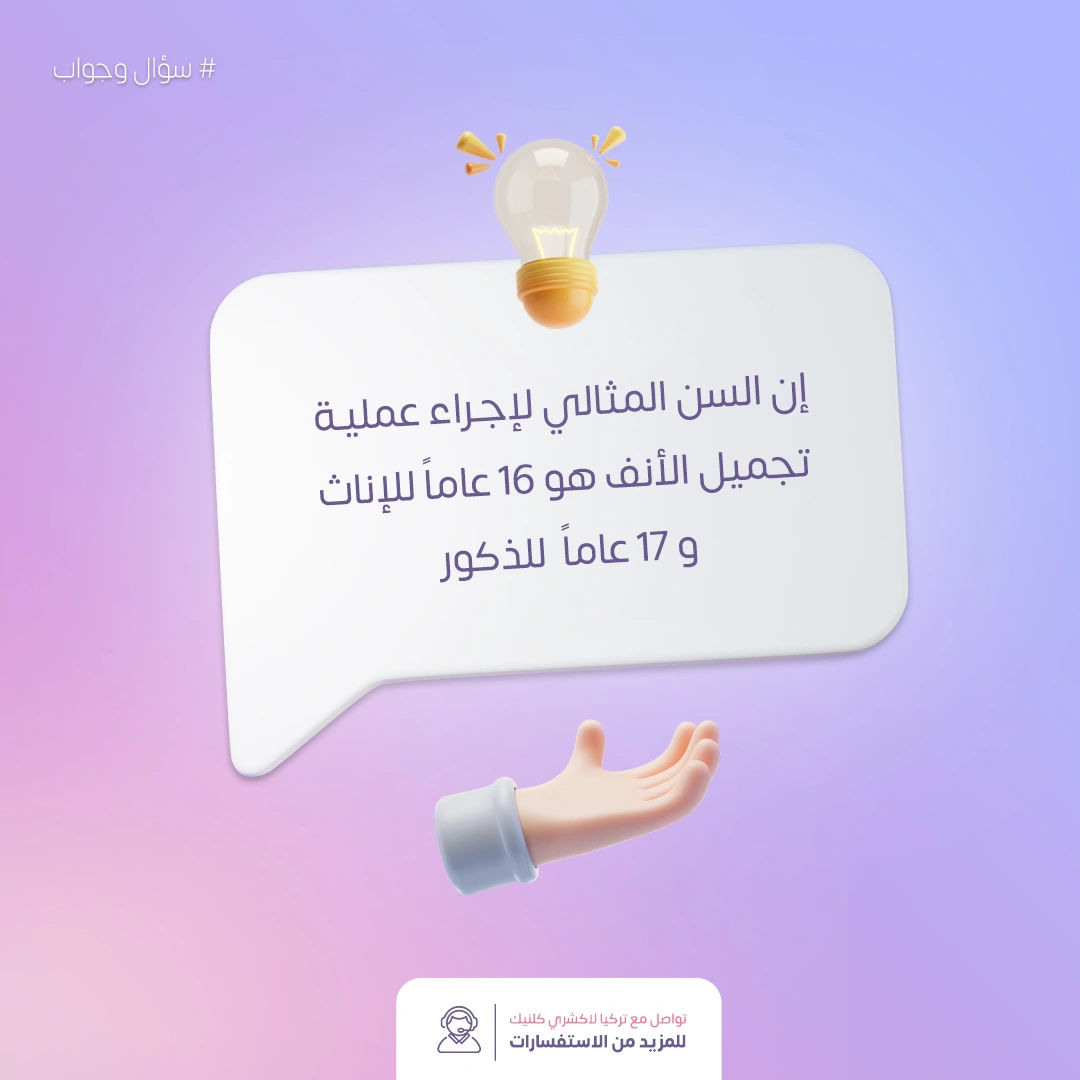 - ألّا يقلّ السّن عن 18 عاماً، حيث يكون الأنف قد أتمّ نموهُ.