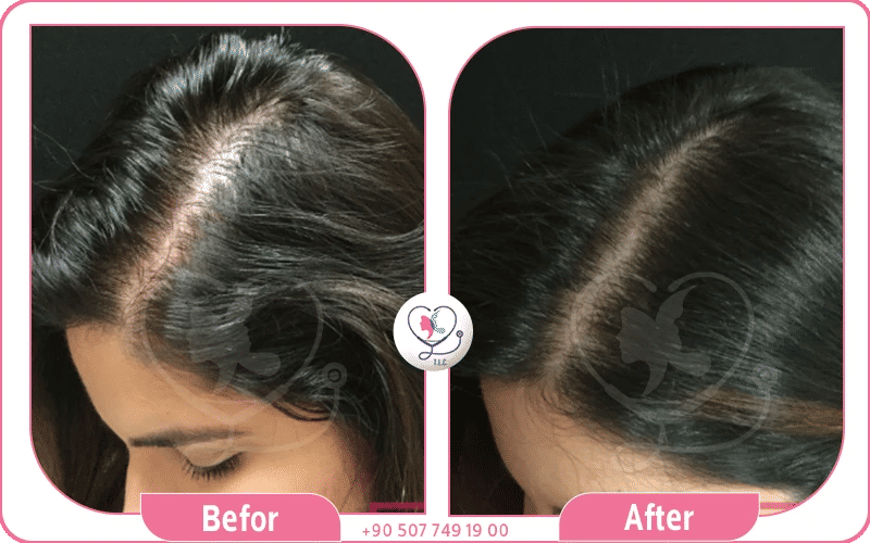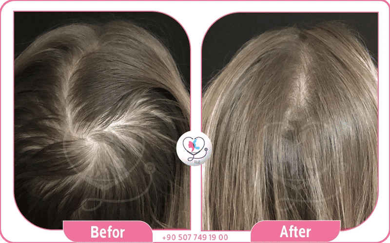 In cases of telogen effluvium, PRP helps accelerate the recovery of the hair growth cycle. By the third month, hair shedding often returns to the normal range of 50–100 hairs per day. Patients also report significant improvement in hair shine and overall hair quality.